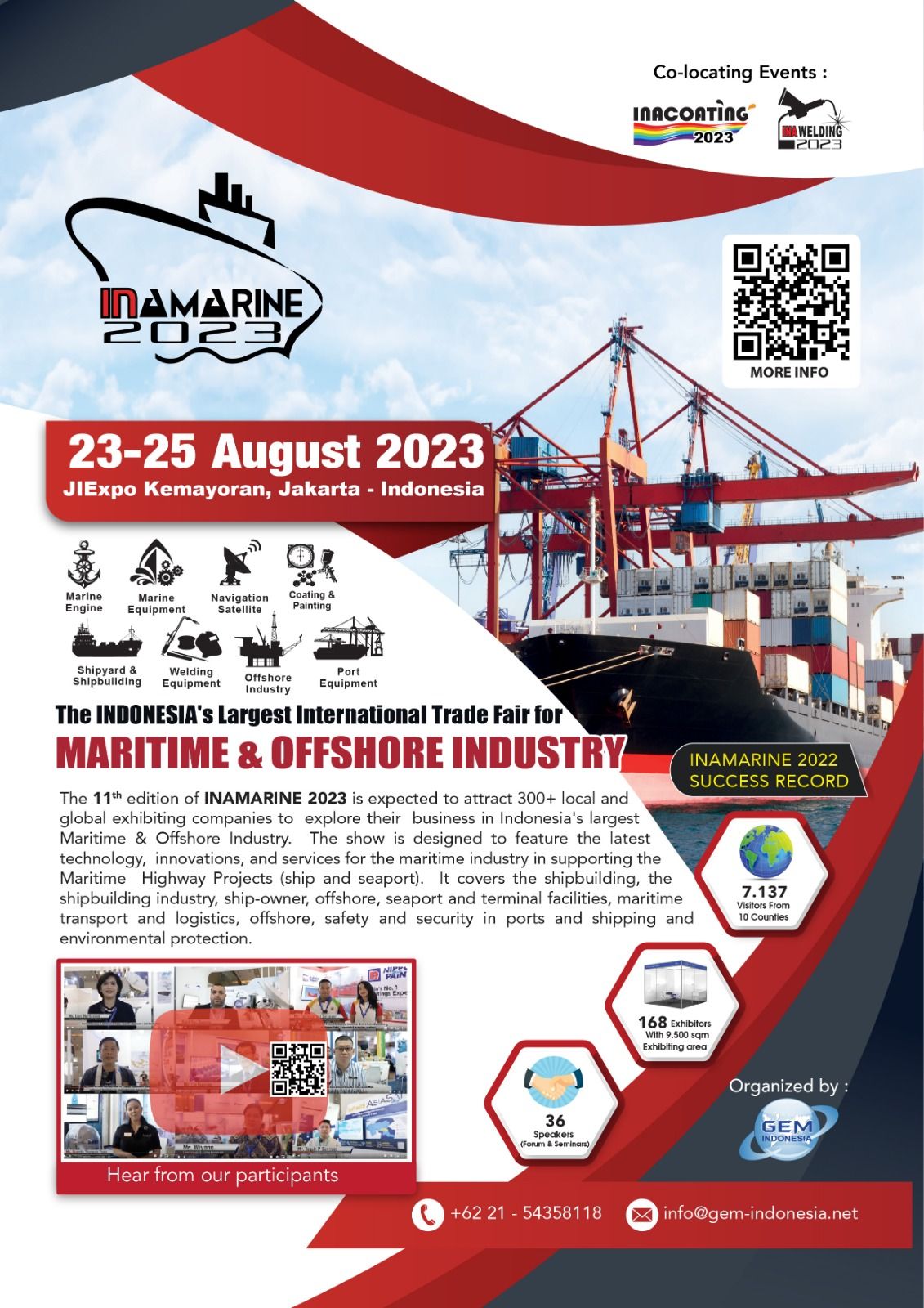 The Indonesia International Shipbuilding, Offshore, Marine Equipment, Machinery & Services Exhibition will return  at Jakarta International Expo (JIExpo), Kemayoran, Jakara – Indonesia.